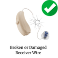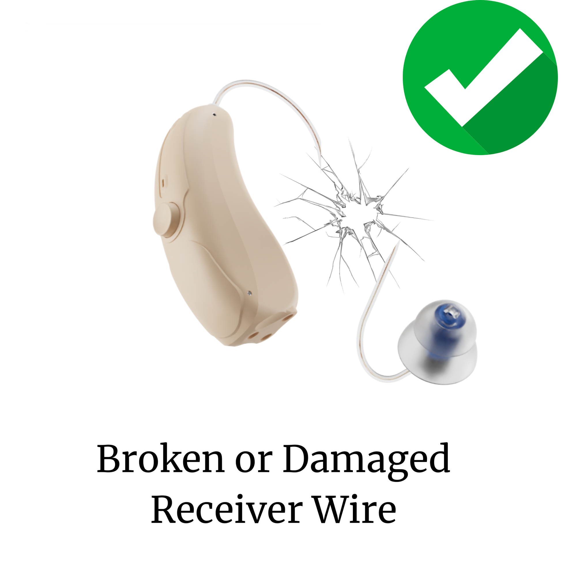 - Covered components include both hearing aids, single or dual receiver wires and charging case.